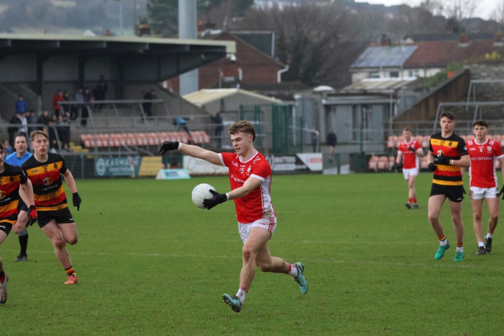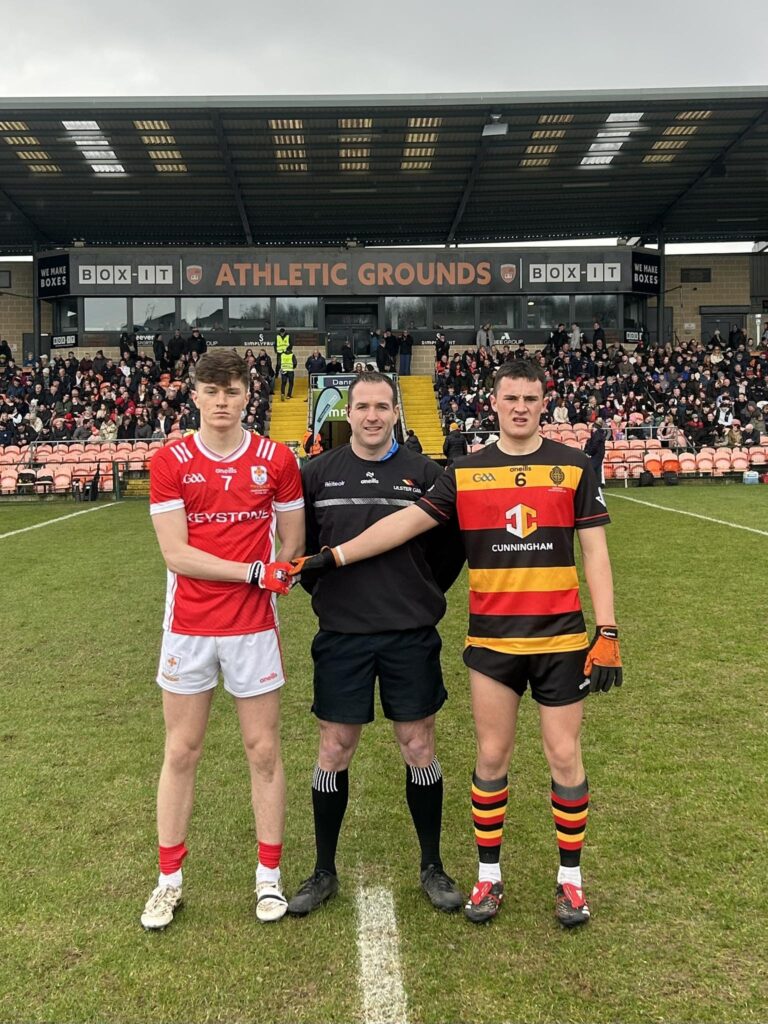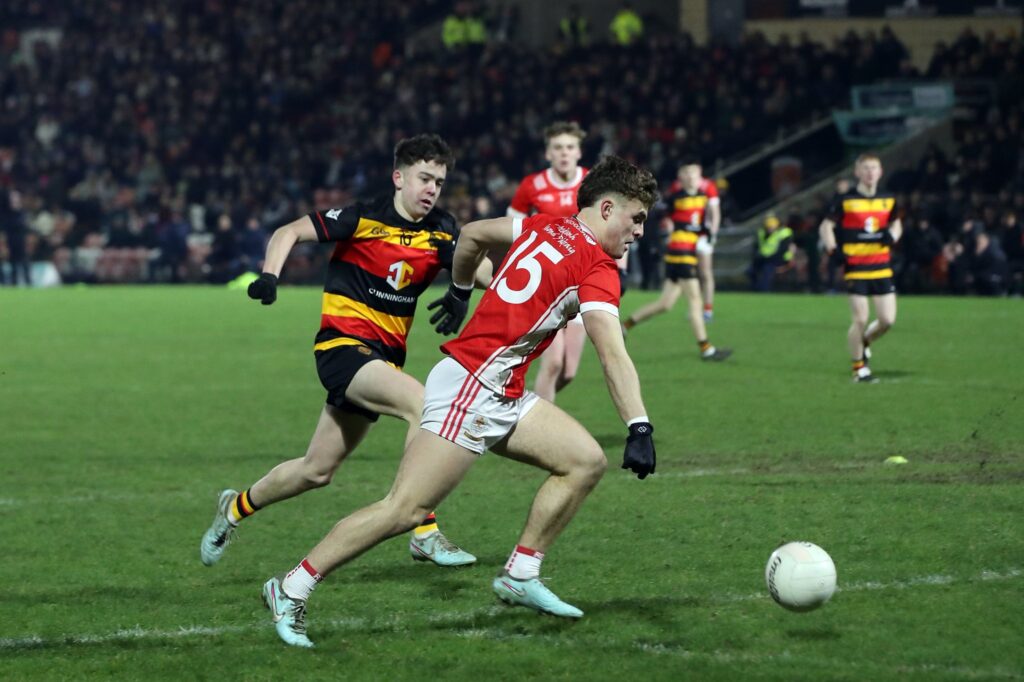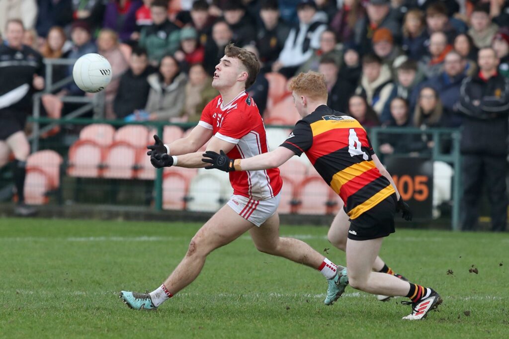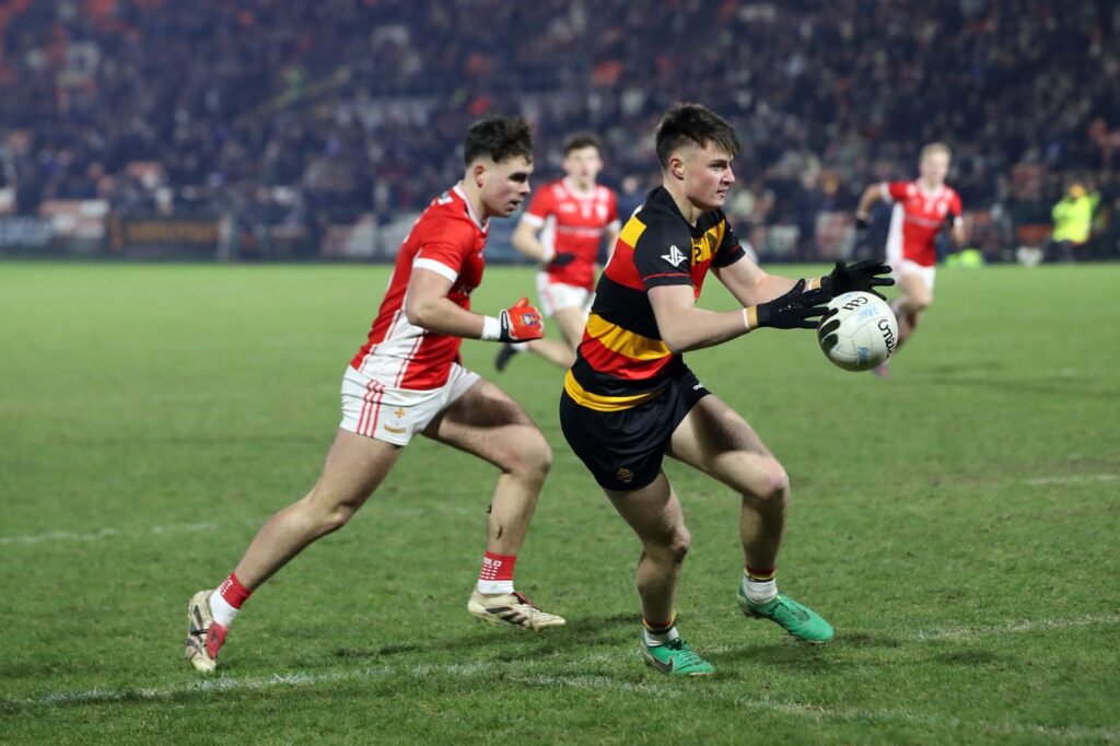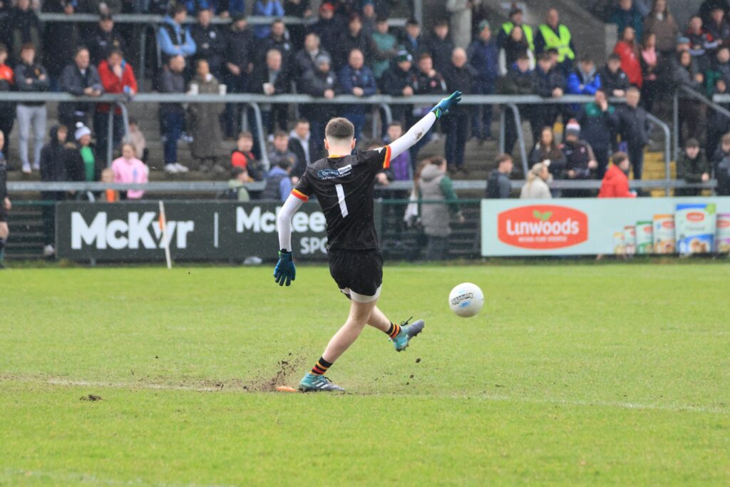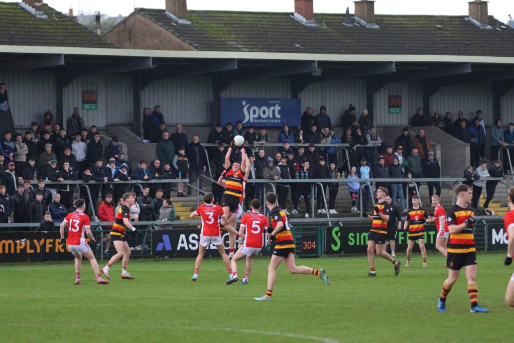 That gap ought to have been wiped out but for goal-line heroics by St Patrick’s Ruairi O’Neill who thwarted Charlie McGrath and Odhran Reel, but momentum was with the Newry outfit as McGrath and Jack O’Mahoney brought the gap to one and then Carr completed the comeback deep in added time to force a replay on Friday, 13 February.