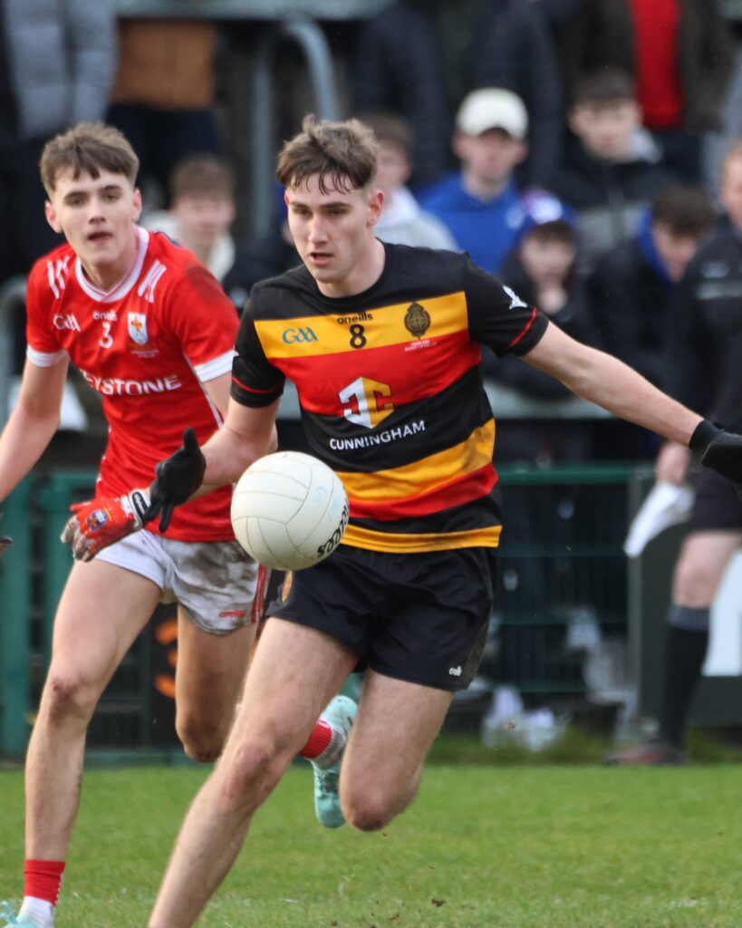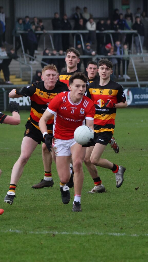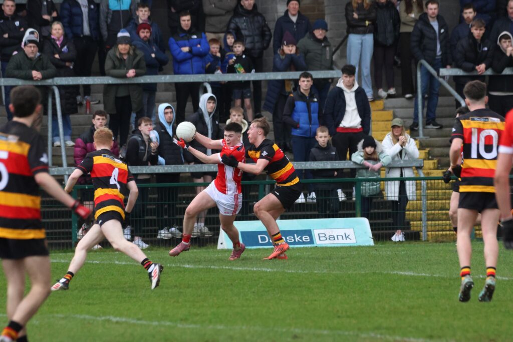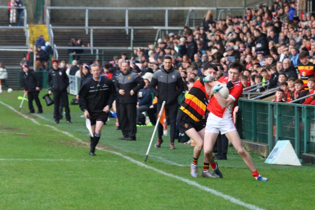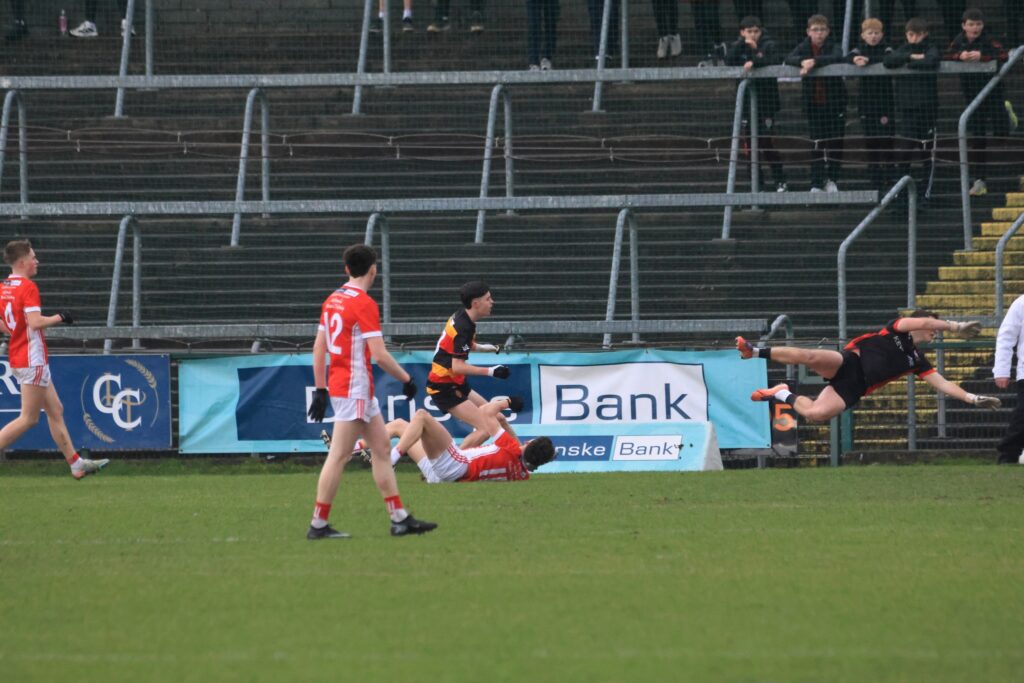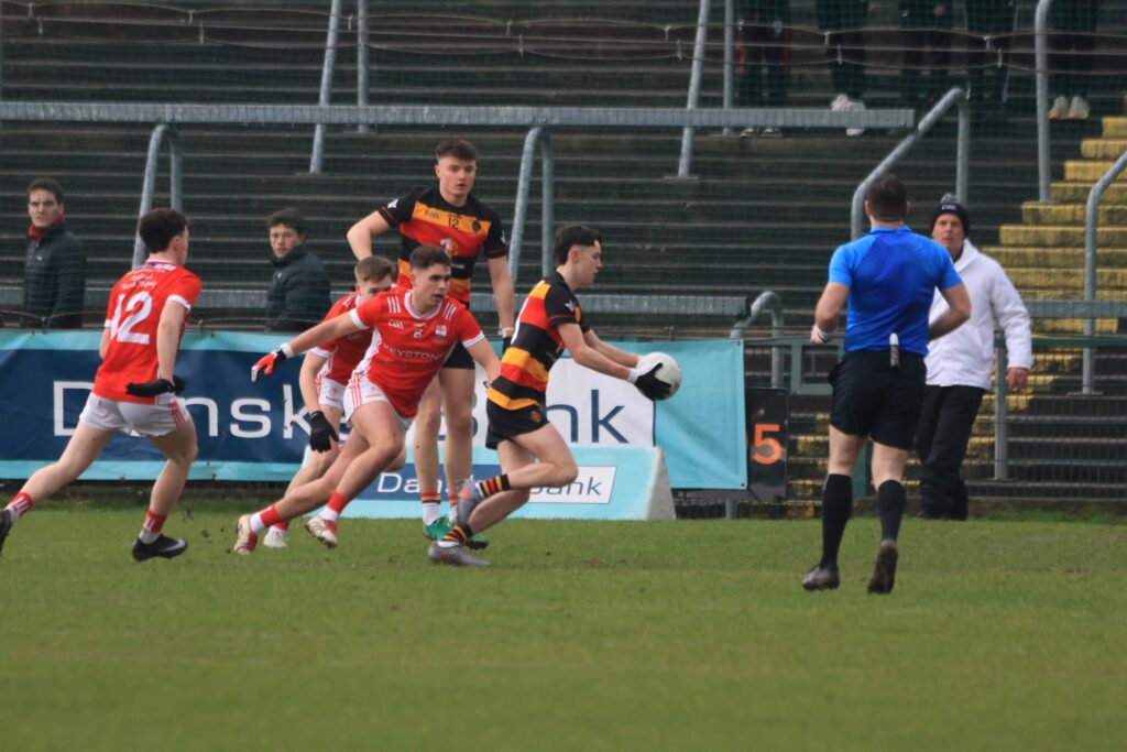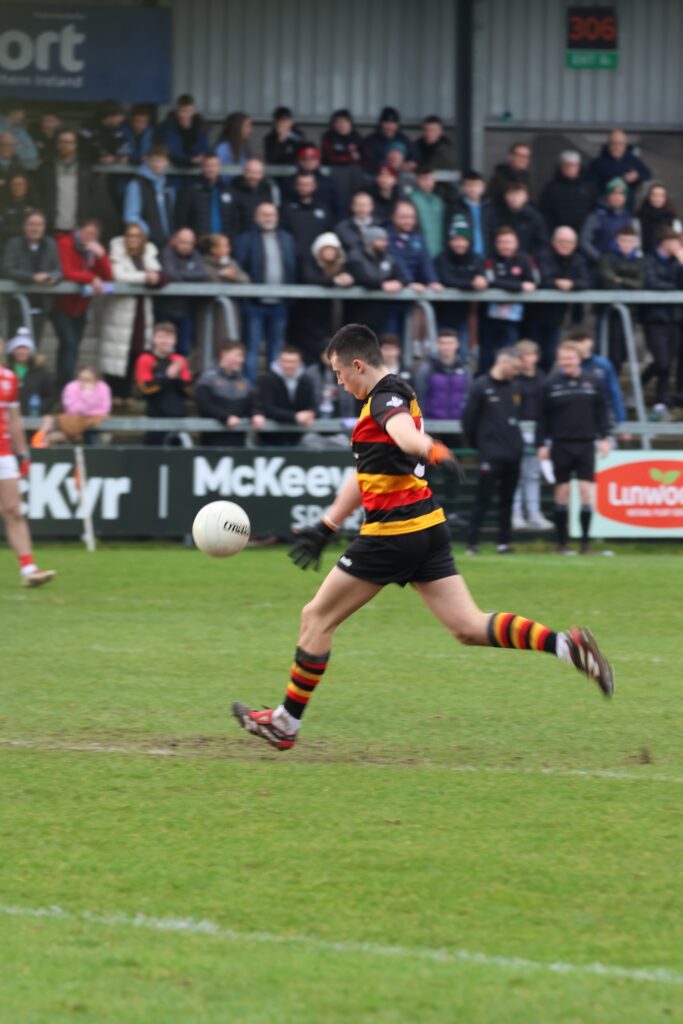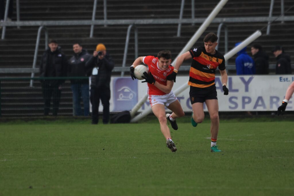 That gap ought to have been wiped out but for goal-line heroics by St Patrick’s Ruairi O’Neill who thwarted Charlie McGrath and Odhran Reel, but momentum was with the Newry outfit as McGrath and Jack O’Mahoney brought the gap to one and then Carr completed the comeback deep in added time to force a replay on Friday, 13 February.