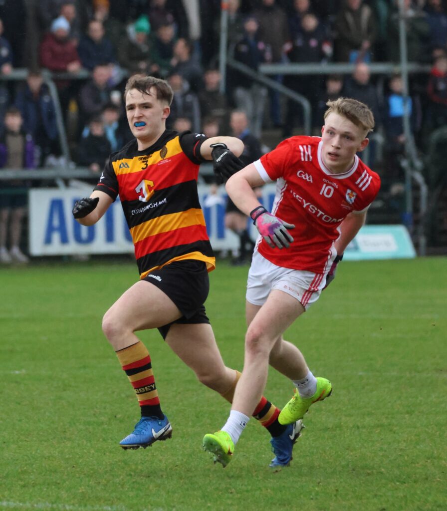Trailing 6-2, at the interval Dungannon, once again started brightly, forcing a turnover, Eoin Long kicked the resultant free,Michael Hughes narrowed the gap after McKeownβs two point attempt came back off the upright. McKernan settled Abbey nerves with a mark, before OβRourke and Oisin Byrne put five between them. Abbey were again on top at midfield, as the Newry school successfully pressed the restarts.