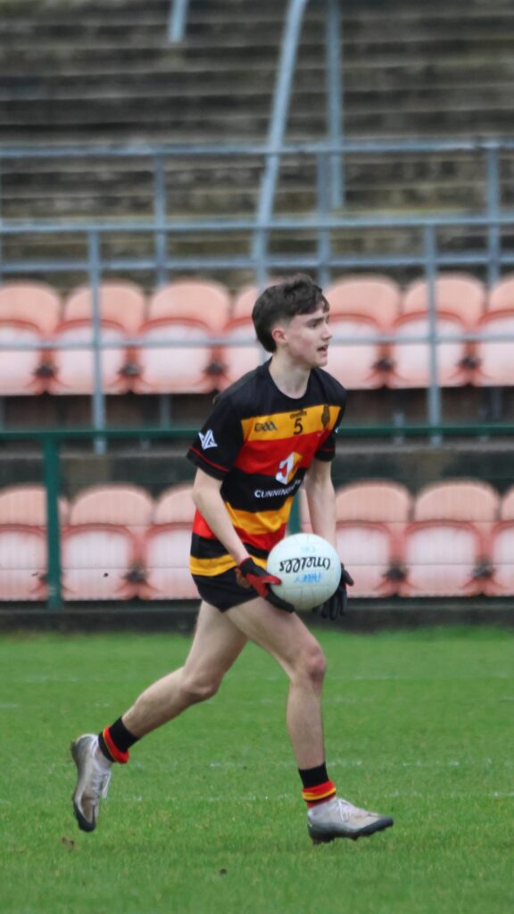 Just when it appeared that Abbey were about to push on Omagh found their groove. Inspired by the drive of Thomas Meenan and Colton Omagh hit 1-6 without reply as they completely bossed the rest of the first half. A defensive mix up in the Abbey rearguard led to a goal following a superb run by Eoghan Donnelly. Omagh were now playing with confidence and self belief. Points from Thomas Meenan, Peter Colton and Michael Mc Namee knocked the confidence out of Abbey and Omagh reached the break leading 1-7 to 0-3. A fabulous defensive block by Jack Gartland denied Abbey a great chance of a goal and Omagh went in at the break leading by seven.