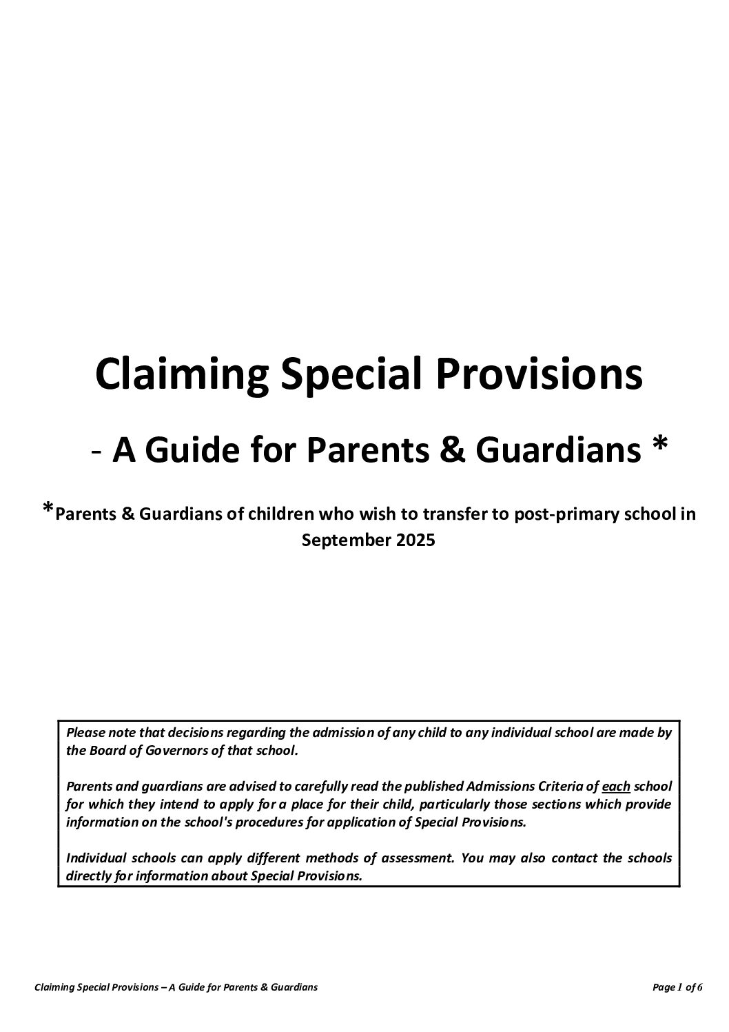 Claiming Special Provisions – A Guide for Parents & Guardians 2024-25