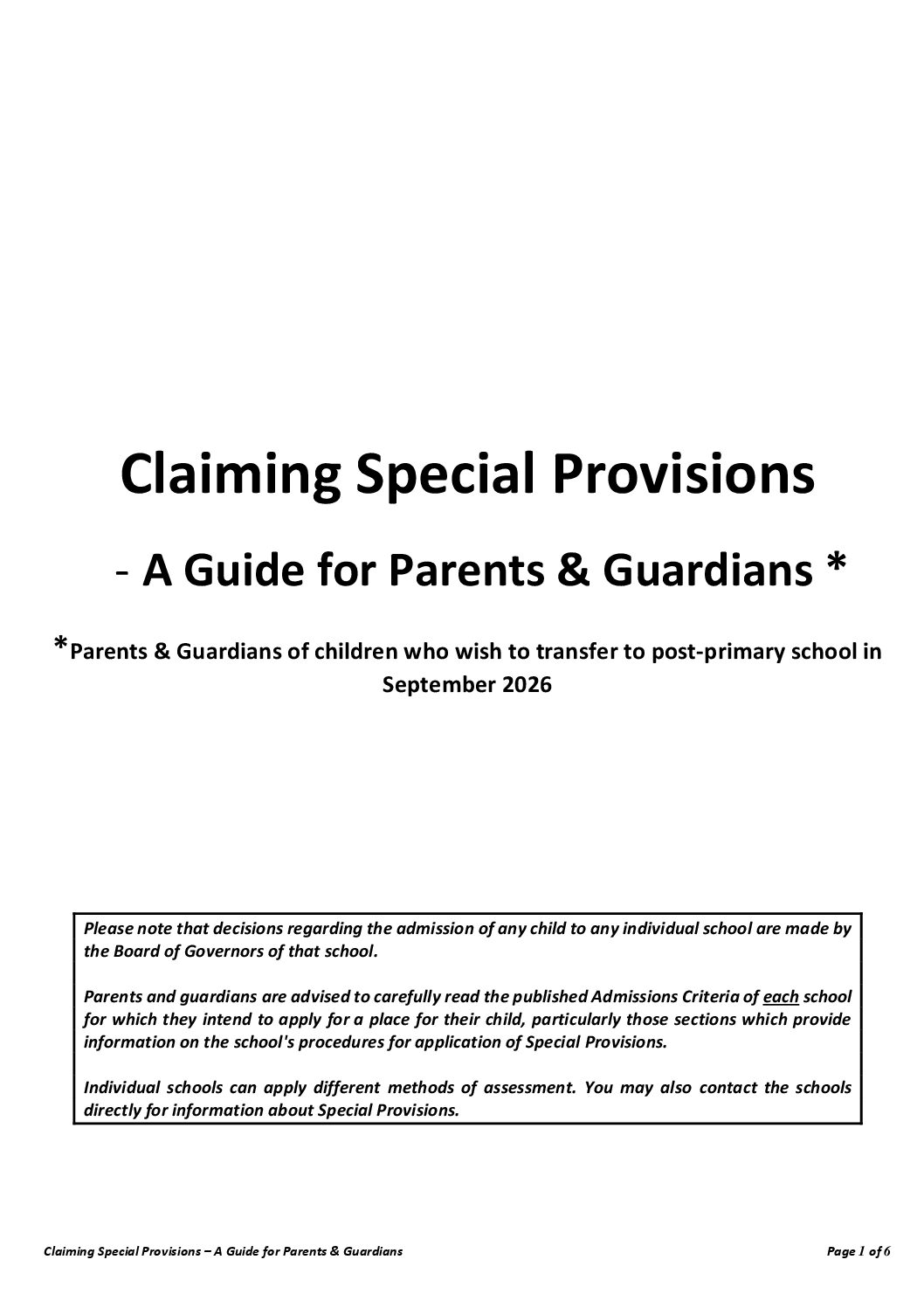 FINAL Claiming Special Provisions – A Guide for Parents & Guardians 2025-26