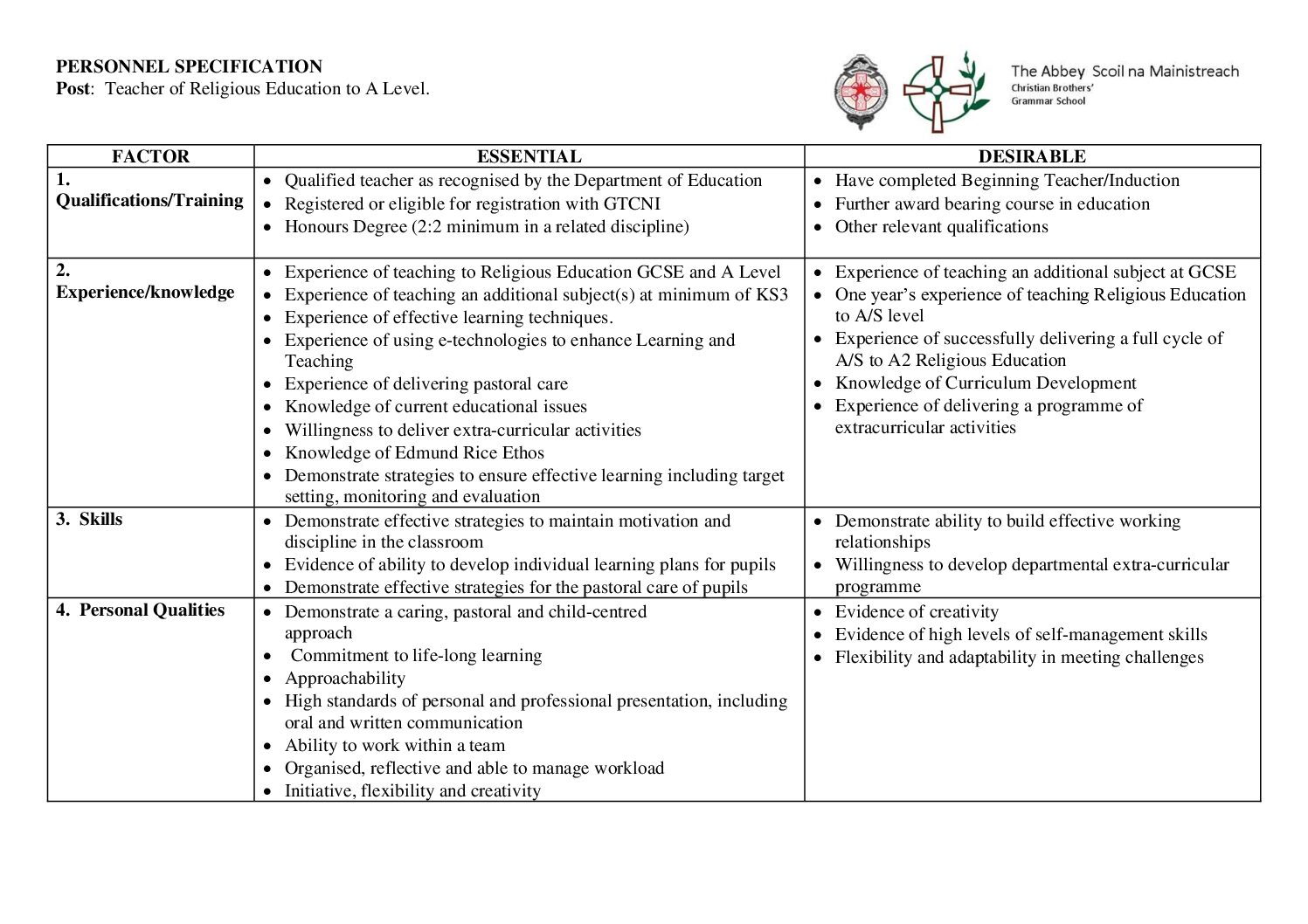 RE Personnel Specification 2025